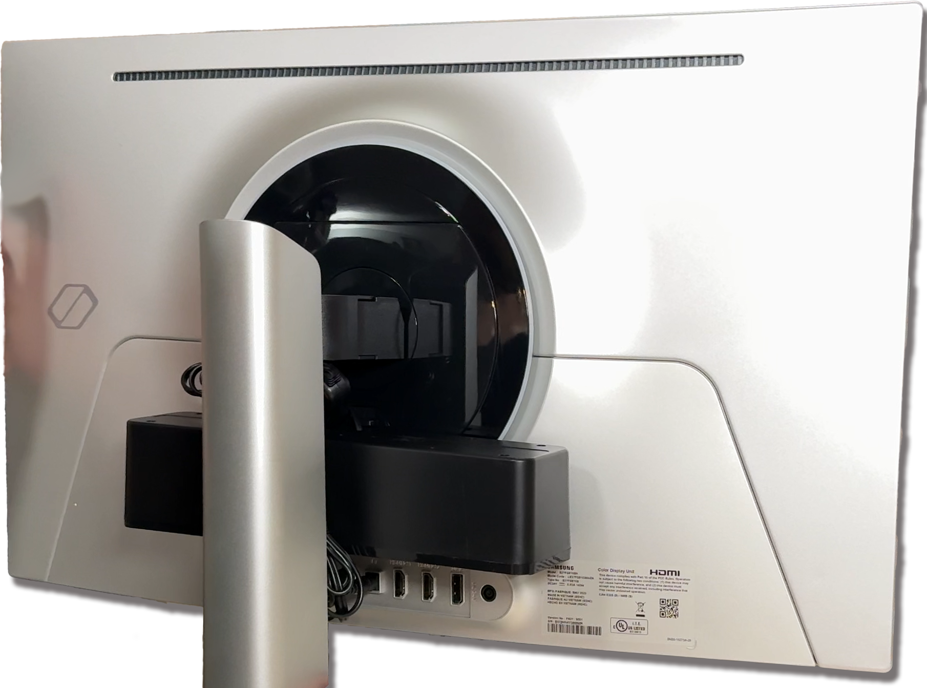 And this HM10 turned out to be PERFECT.  It’s light enough that a small piece of heavy duty mounting tape was all I needed to secure it to the back.  Plus, none of the ports are blocked, everything tucks away neatly and it’s powered right from the monitor itself!  You literally couldn’t even guess it was there if you’re looking at the display from the front!  And the quality wasn’t bad either –  I’d say equal to, or better than any speakers built into PC monitors…which isn’t saying a lot, but at least it’s not a step down!  And the bottom line: For $15, you can add sound to a display and not even know it’s there!